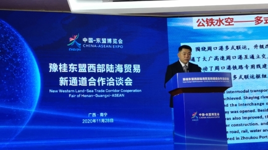 11月27日,第17屆中國(guó)——東盟博覽會(huì)在廣西南寧拉開(kāi)帷幕,周口港區(qū)隨河南代表團(tuán)亮相盛會(huì)。在開(kāi)幕式次日舉辦的豫桂東盟西部陸海貿(mào)易新通道合作洽談會(huì)上,周口港區(qū)黨委書(shū)記孫紅偉登臺(tái)演講,向國(guó)內(nèi)外參會(huì)嘉賓、客商推介周口中心港多式聯(lián)運(yùn)便利條件以及港區(qū)招商引資優(yōu)厚政策,令與會(huì)人員眼前一亮。一家來(lái)自越南的進(jìn)出口貿(mào)易企業(yè),當(dāng)場(chǎng)與港區(qū)企業(yè)簽訂進(jìn)出口貿(mào)易長(zhǎng)期合作協(xié)議。