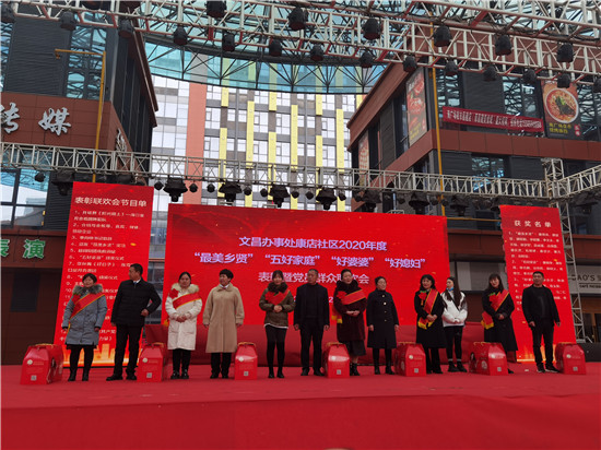 為大力弘揚(yáng)中華民族傳統(tǒng)美德,深入挖掘康店社區(qū)尊老敬孝、勤儉持家的先進(jìn)典型,積極引導(dǎo)廣大居民群眾移風(fēng)易俗、孝老愛親,促進(jìn)家庭和睦、社會和諧,11月27日,城鄉(xiāng)一體化示范區(qū)文昌辦事處康店社區(qū)舉行“最美鄉(xiāng)賢”“好婆婆”“好媳婦”“五好家庭”表彰大會暨文藝演出活動。據(jù)悉,經(jīng)社區(qū)村民推薦,康店社區(qū)評選出的14位“最美鄉(xiāng)賢”、7戶“五好家庭”、5位“好婆婆”、7位“好媳婦”現(xiàn)場接收表彰。