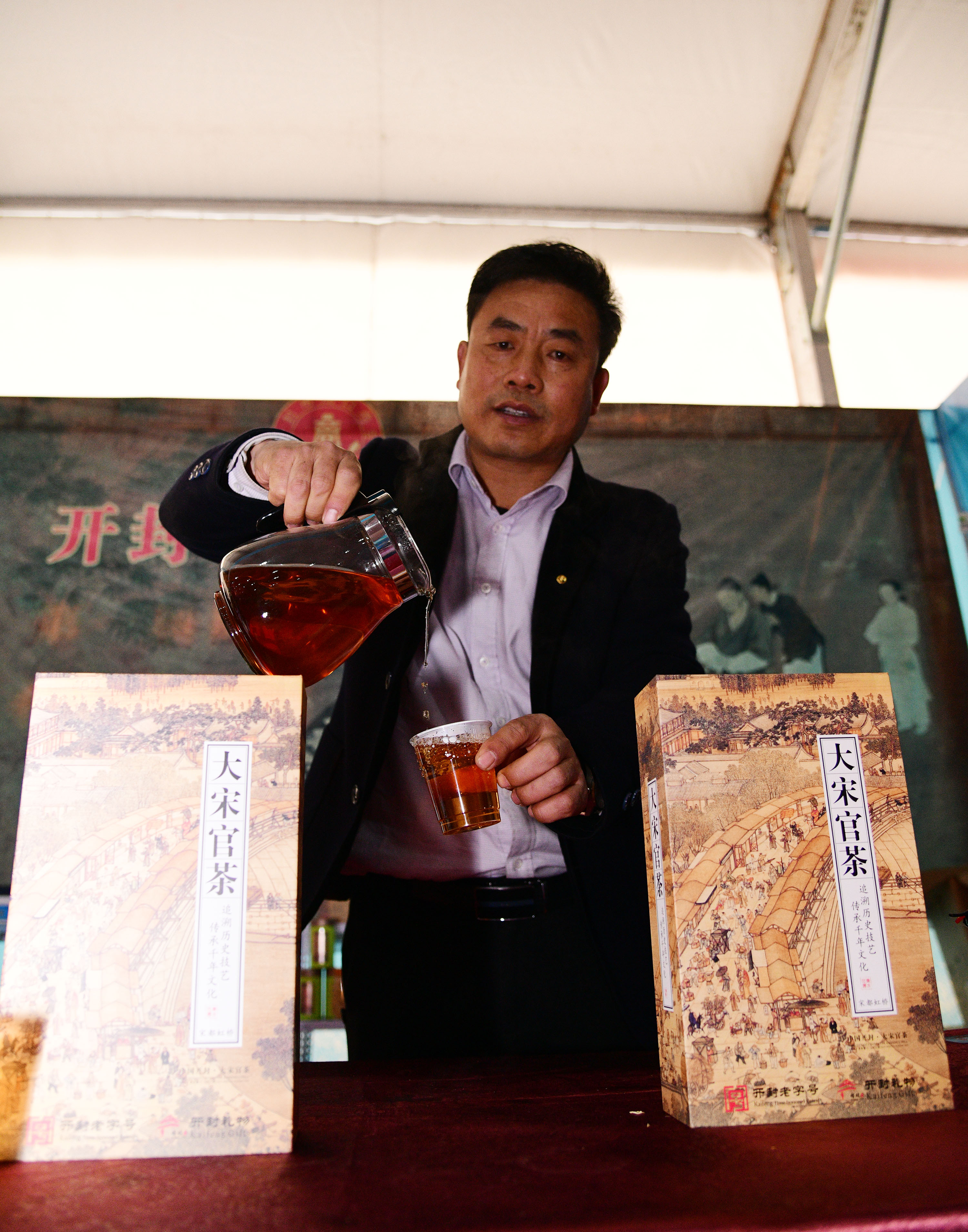 在展會(huì)上給顧客講述大宋官瓷品相的董俊,也是很厲害的周口企業(yè)家,能夠把開封老字號的官瓷,運(yùn)營得風(fēng)生水起,大宋官瓷瓷器和汴繡被譽(yù)為七朝古都象征性的物產(chǎn),還有大宋官茶,含有被譽(yù)為茶中黃金的“金花菌”,是“河南老字號”、“非物質(zhì)文化遺產(chǎn)”,也被選入“首屆開封禮物”。大宋官茶源于宋神宗(公元1068年),它今天的主人是淮陽區(qū)新站籍企業(yè)家牛華麗,這位淮陽籍漢子從小在開封長大,對大宋官茶獨(dú)有情種,現(xiàn)在是大宋官茶掌舵人,是大宋官茶非遺傳承人。而福興齋桶子雞老總馬勇是沈丘人,這是開封的名吃,去開封旅游,吃桶子雞和小籠包,成為游客必須品嘗的美味。馬勇參加周商大會(huì)帶回周口的桶子雞深受家鄉(xiāng)人的喜歡,一直熱賣。而“鞋品”鞋的老總侯建峰是鄲城人,他在廣州設(shè)有代加工廠,鞋子以河南為主要市場,在開封城由五個(gè)專賣店,同時(shí)也銷往全國。