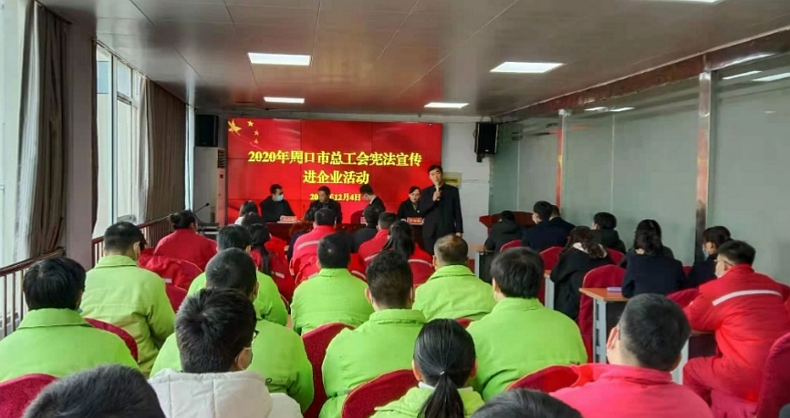 在第七個國家憲法日宣傳活動期間,周口市總工會根據(jù)市依法治市辦公室和省總工會普法辦工作要求,組織多種形式的憲法進企業(yè)、進廣場、網(wǎng)上憲法知識競答等學習宣傳活動?;顒悠陂g,全市工會組織參加38人次,其中工會律師志愿者10人次,發(fā)放資料2000多份,設(shè)立展板30多塊、咨詢臺9個,服務(wù)群眾1000多人次。