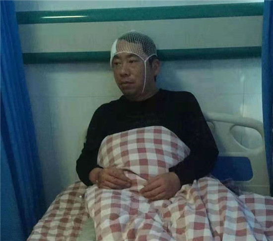 11月11日上午,在鎮(zhèn)領(lǐng)導(dǎo)的安排下,王少華前往縣醫(yī)保局為部分貧困人員及大病人員辦理慢性病本、領(lǐng)取健康扶貧相關(guān)材料。當(dāng)日,他領(lǐng)到材料已是上午10:30分,為了讓老百姓及時(shí)拿到慢性病本與扶貧材料,他馬不停蹄驅(qū)車趕回醫(yī)院。10:45分左右,他行駛到217省道與八一大道交叉口時(shí),一輛由南向北的半掛貨車直挺挺地撞到他的車身上。他頓時(shí)滿頭是血,當(dāng)場失去意識。120醫(yī)護(hù)人員趕到后,立即把他送到商水縣人民醫(yī)院急診室,完善頭顱、胸部、全腹CT等資料。之后,他接受清創(chuàng)縫合、輸液等相關(guān)處理。13:10分左右,王少華睜開眼睛,說的第一句話就是:“我要回醫(yī)院,慢性病本還在車?yán)?,我要給他們送去……”住院5天后,大腦嚴(yán)重受損的王少華還不記得車禍的經(jīng)過,一周后才能獨(dú)立行走。