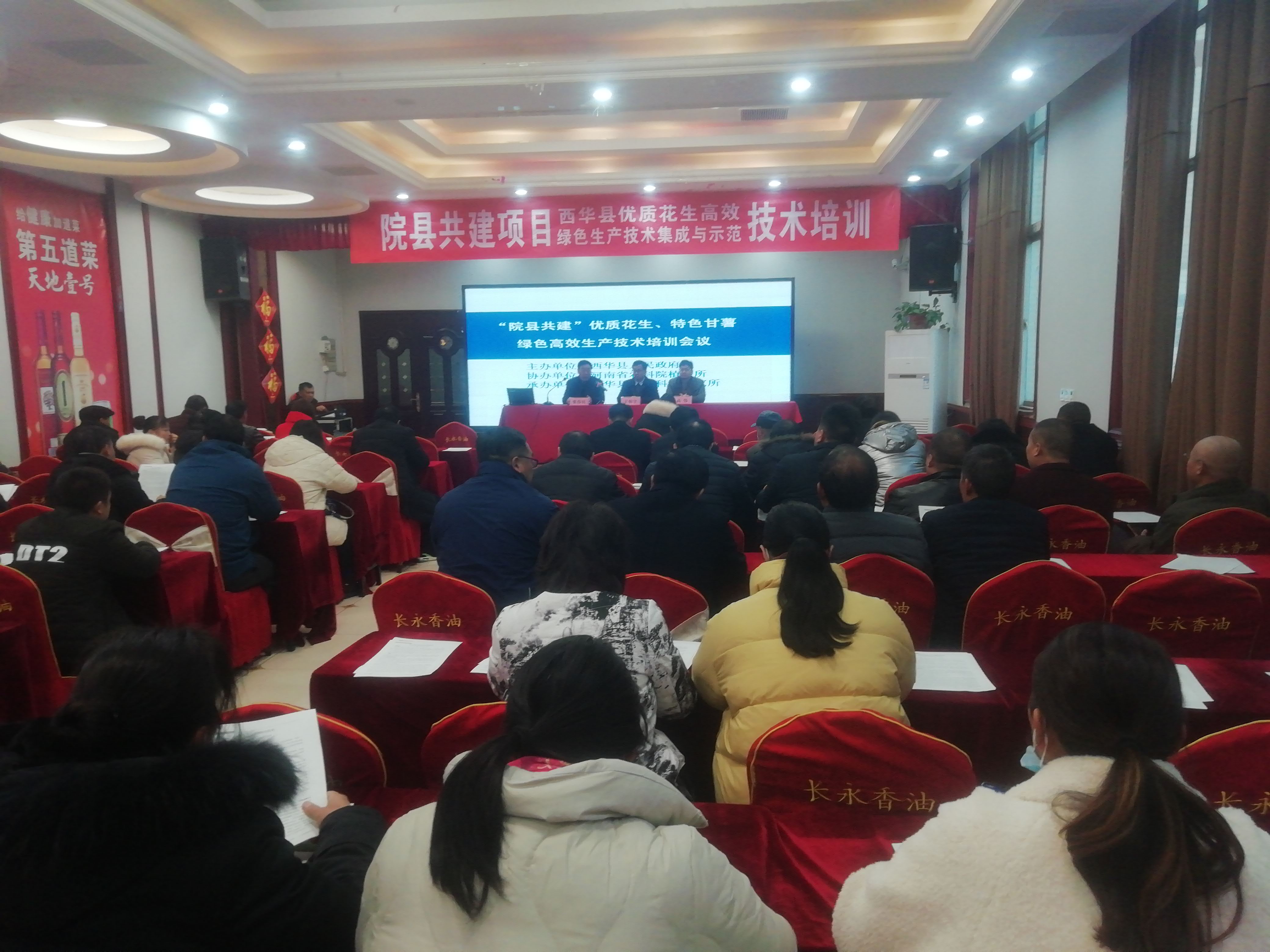 12月7日上午,院縣共建項(xiàng)目西華縣優(yōu)質(zhì)花生高效綠色集成與示范技術(shù)培訓(xùn)會及現(xiàn)代農(nóng)業(yè)科技綜合示范縣項(xiàng)目西華縣甘薯安全貯藏和葉用甘薯生產(chǎn)技術(shù)培訓(xùn)在西華縣溫哥華一樓會議室舉辦。來自全縣各鄉(xiāng)(鎮(zhèn))、辦事處分管農(nóng)業(yè)副職,農(nóng)業(yè)經(jīng)營主體代表及種植大戶100多人參加會議。