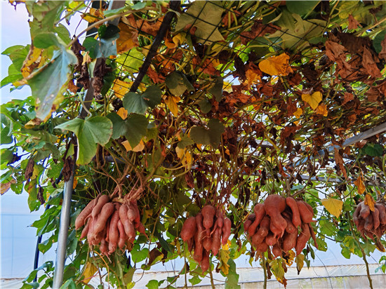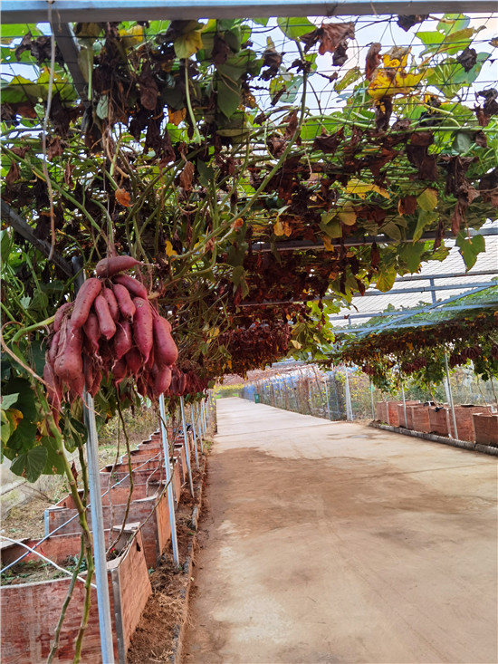 西華縣農(nóng)科所積極開展“空中結(jié)薯”試驗種植研究,并取得成功。“空中結(jié)薯”采取嫁接技術(shù),選用旋花科植物牽牛作砧木,脫毒薯苗作接穗嫁接而成,嫁接成活后栽到土壤里,搭建棚子,加強薯苗水肥管理,每株插一根小竹木桿,促進(jìn)薯苗快速生長上棚,在棚上吊花盆,盆內(nèi)放蛭石,生長到掤上的薯秧壓到花盆里,加強水肥管理。90天結(jié)薯,進(jìn)入10月份把花盆去掉。該技術(shù)打破傳統(tǒng)栽培方式,主要為公園、科技園區(qū)、農(nóng)業(yè)生態(tài)觀光園、家庭庭院內(nèi)培植,有很好的科研價值、觀賞價值和農(nóng)業(yè)推廣價值。周口日報·周道客戶端記者李鳳霞 攝