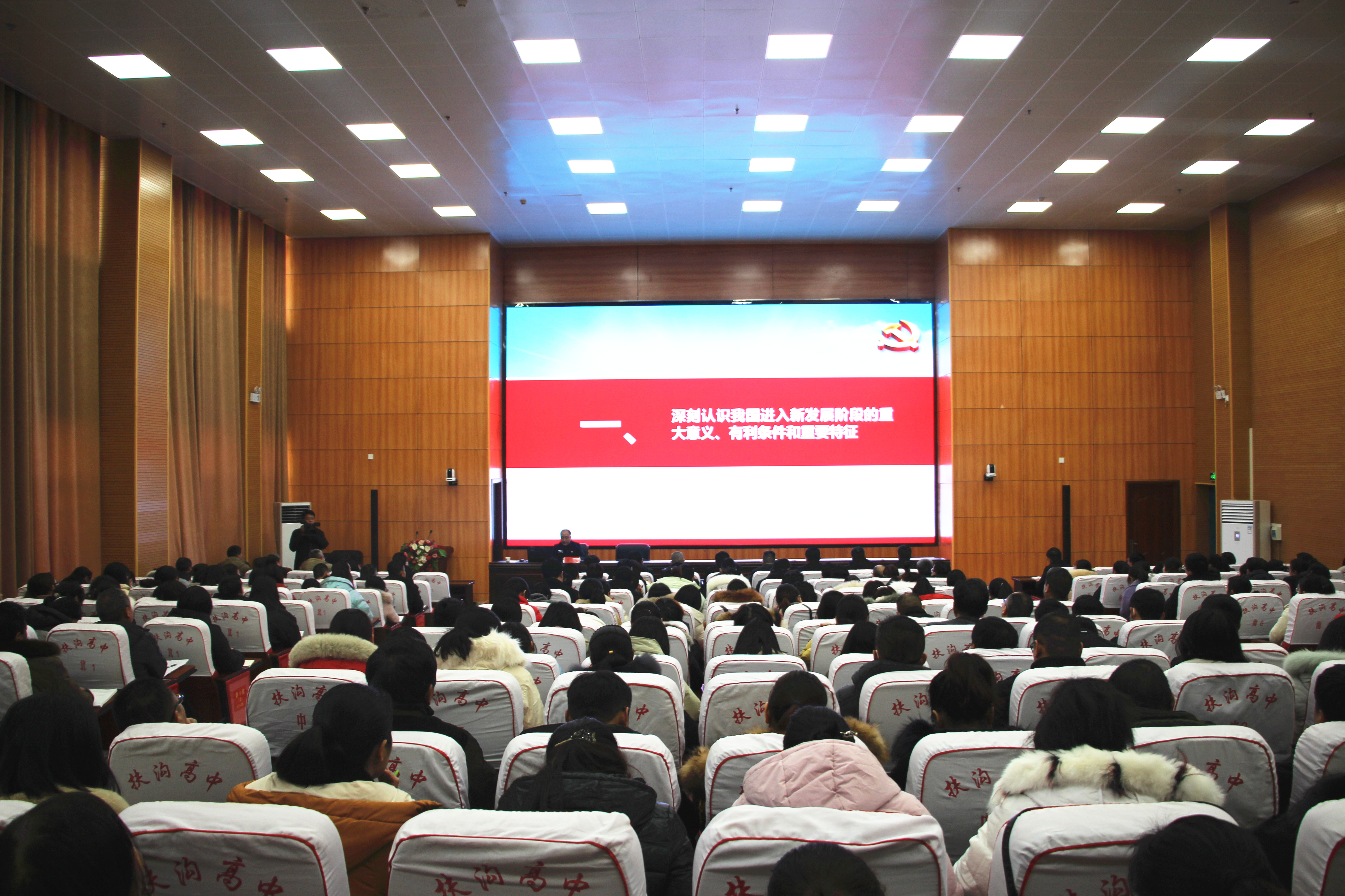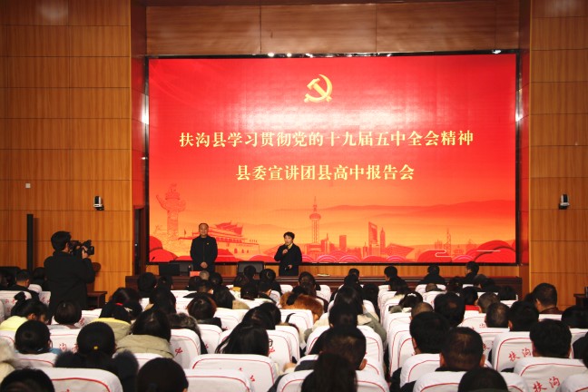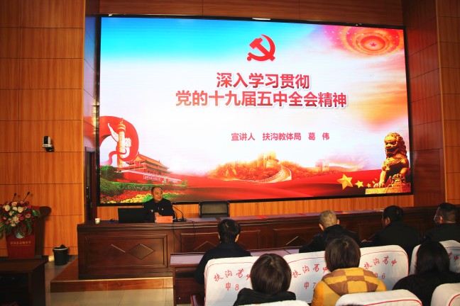 12月12日下午,扶溝縣高中德馨樓七樓會(huì)議室掌聲陣陣、座無(wú)虛席,扶溝縣學(xué)習(xí)貫徹黨的十九屆五中全會(huì)精神縣委宣講團(tuán)縣高中報(bào)告會(huì)正在這里舉行,宣講會(huì)特邀縣教體局黨組書記葛偉進(jìn)行宣講,局機(jī)關(guān)班子成員,縣高中班子成員和400余名教師參加了宣講會(huì)。