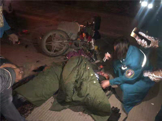 12月11日5時24分許,在商水縣城巴路、湯莊鄉(xiāng)大趙村扶貧服務點門口處,商水縣舒莊鄉(xiāng)吳莊村11組韓同首駕駛豫P1Z851號小型普通客車由西向東行駛時與相對方向行駛的舒莊鄉(xiāng)北王張村9組張義來駕駛的無牌兩輪摩托車發(fā)生交通事故,造成車輛損壞,張義來及無牌兩輪摩托車乘車人張金在受傷。商水縣交警大隊與周口人和醫(yī)院立即啟動“警醫(yī)結(jié)合”救治機制,開通綠色入院通道,采取零繳費先救治措施,對傷者迅速進行救治,傷者暫時還在救治中。此事故的傷員救治過程,充分展現(xiàn)了“警醫(yī)合作”機制的優(yōu)越性和可行性,傷者家屬對公安機關(guān)和醫(yī)院十分感謝。①15