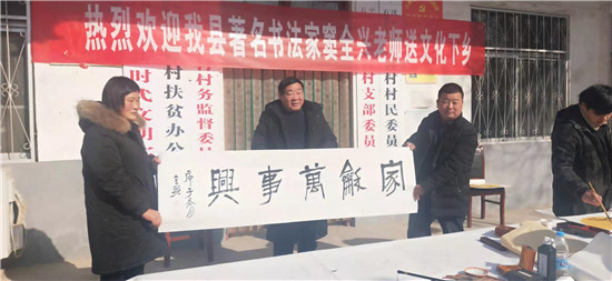 為弘揚傳統(tǒng)文化,傳播正能量,助力農(nóng)村文化建設,12月16日,沈丘縣自然資源局駐村工作隊邀請沈丘縣書法家竇全興老師到石槽集鄉(xiāng)于營行政村開展送文化下鄉(xiāng)活動,為廣大群眾送去“文化大餐”。