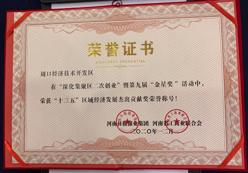 12月17日至18日,以“變革與新生”為主題的第九屆河南省產(chǎn)業(yè)集聚區(qū)座談會暨頒獎典禮大會在鄭州舉辦,開發(fā)區(qū)榮獲“十三五”區(qū)域經(jīng)濟(jì)發(fā)展杰出貢獻(xiàn)獎榮譽(yù)稱號。