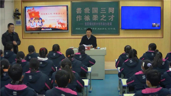 “一問(wèn)民族血脈,二問(wèn)家國(guó)情懷,三問(wèn)責(zé)任擔(dān)當(dāng)……”12月22日,扶溝縣委常委、統(tǒng)戰(zhàn)部長(zhǎng)任松奎來(lái)到韭園中學(xué),采用現(xiàn)場(chǎng)授課和網(wǎng)絡(luò)直播的形式給學(xué)校師生帶來(lái)一堂生動(dòng)的思政課。