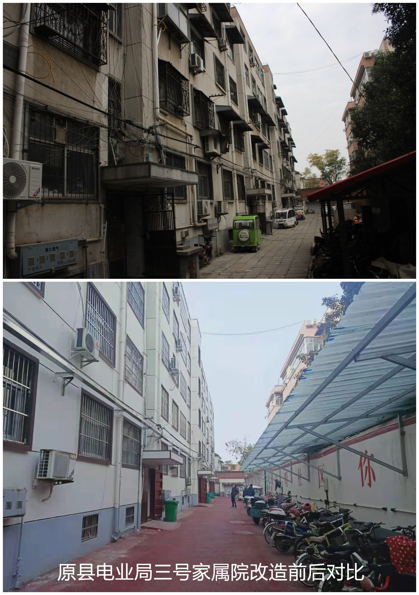 12月22日,陽光明媚,記者一行走進位于西華縣箕城路上的供電公司(原電業(yè)局)三號家屬院,只見一棟五層高的家屬樓墻壁被粉刷一新,家家戶戶新裝的不銹鋼防盜窗結實穩(wěn)固,院里新鋪設的紅色透水混泥土地面平整干凈,配有充電插座的電動車雨棚方便實用,充滿新意的“文化墻”耀眼醒目……