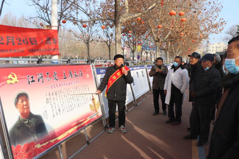 在太康縣人民廣場,太康縣自然資源局圍繞“中國共產(chǎn)黨夢想起航的地方”“擘畫中國未來的發(fā)展藍(lán)圖”兩個專題,專門制作大型版面20余幅,重點(diǎn)宣傳黨的一大代表人物、黨的十九屆五中全會精神等內(nèi)容,“中國好人”、太康縣自然資源局退休干部韓其功向大家簡要介紹一代偉人毛主席的豐功偉績,將歷史與時代緊密結(jié)合,內(nèi)容豐富,圖文并茂,吸引眾多市民駐足觀看。
