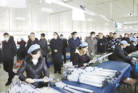 12月23日下午,在鄲城縣舉行的中國日用雜品工業(yè)協(xié)會制傘專業(yè)委員會五屆五次暨六屆一次會員代表大會中,來自全國制傘行業(yè)的精英們先后來到鄲城會客廳、傘業(yè)產(chǎn)業(yè)園、兄和家居、返鄉(xiāng)創(chuàng)業(yè)園、洺河森林樂園、鄲城一高、人民公園、體育場等地,實地感受鄲城高質(zhì)量發(fā)展成果和傘業(yè)發(fā)展?jié)摿Γ仓\中國傘業(yè)的發(fā)展前景。 記者 徐松 攝