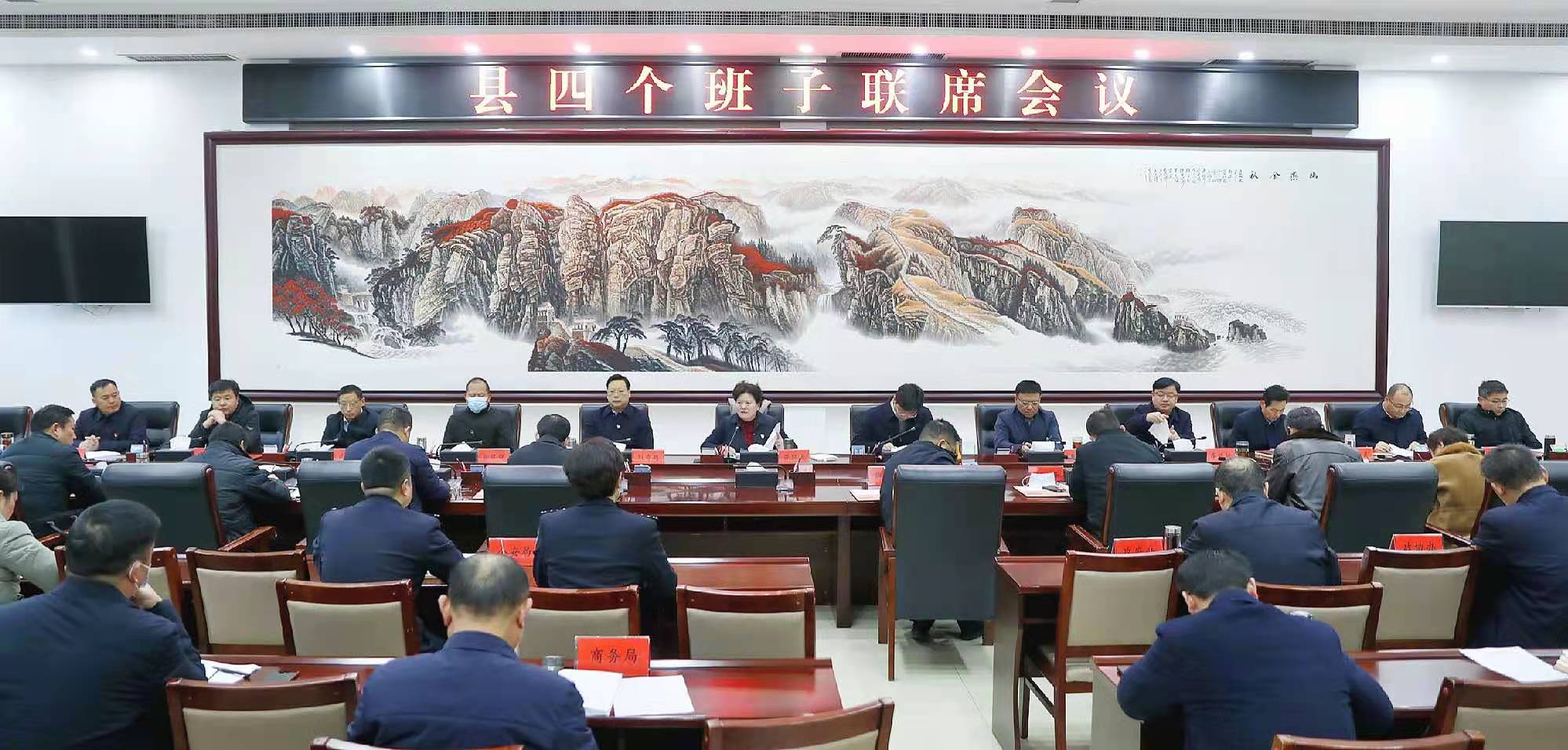 12月31日,扶溝縣召開四個(gè)班子聯(lián)席會(huì)。張穎波、崔衛(wèi)國、耿黨恩、姜永來、張建中、李明朗、武衛(wèi)東、王霄靈、趙紅亮、尚守永、曹來凌、張禹等縣四個(gè)班子領(lǐng)導(dǎo)、副處級(jí)以上干部出席會(huì)議。會(huì)議由縣委書記張穎波主持。