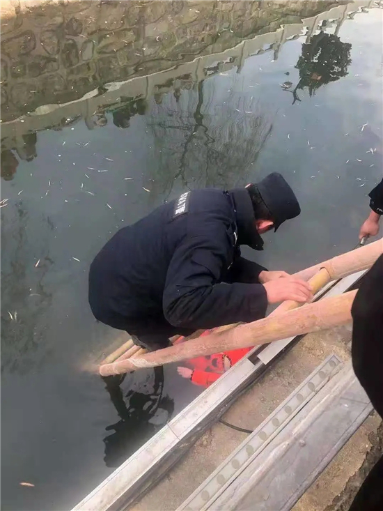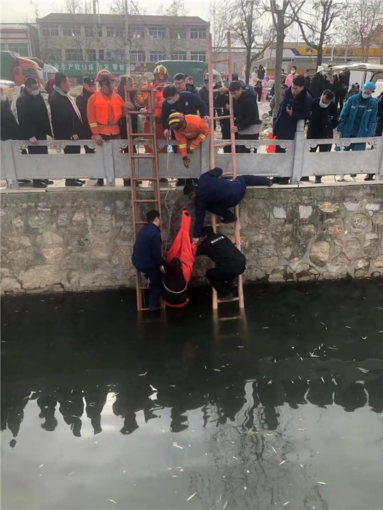 1月10日12時左右,鹿邑縣公安局特巡警大隊東關警亭值班人員,接到指揮中心指令稱:苑家園北側護城河里有一名女子落水。接到報警后,帶班隊長武偉迅速帶領特警隊員姚留地、張景濤、倪亞彬等人趕到現(xiàn)場。