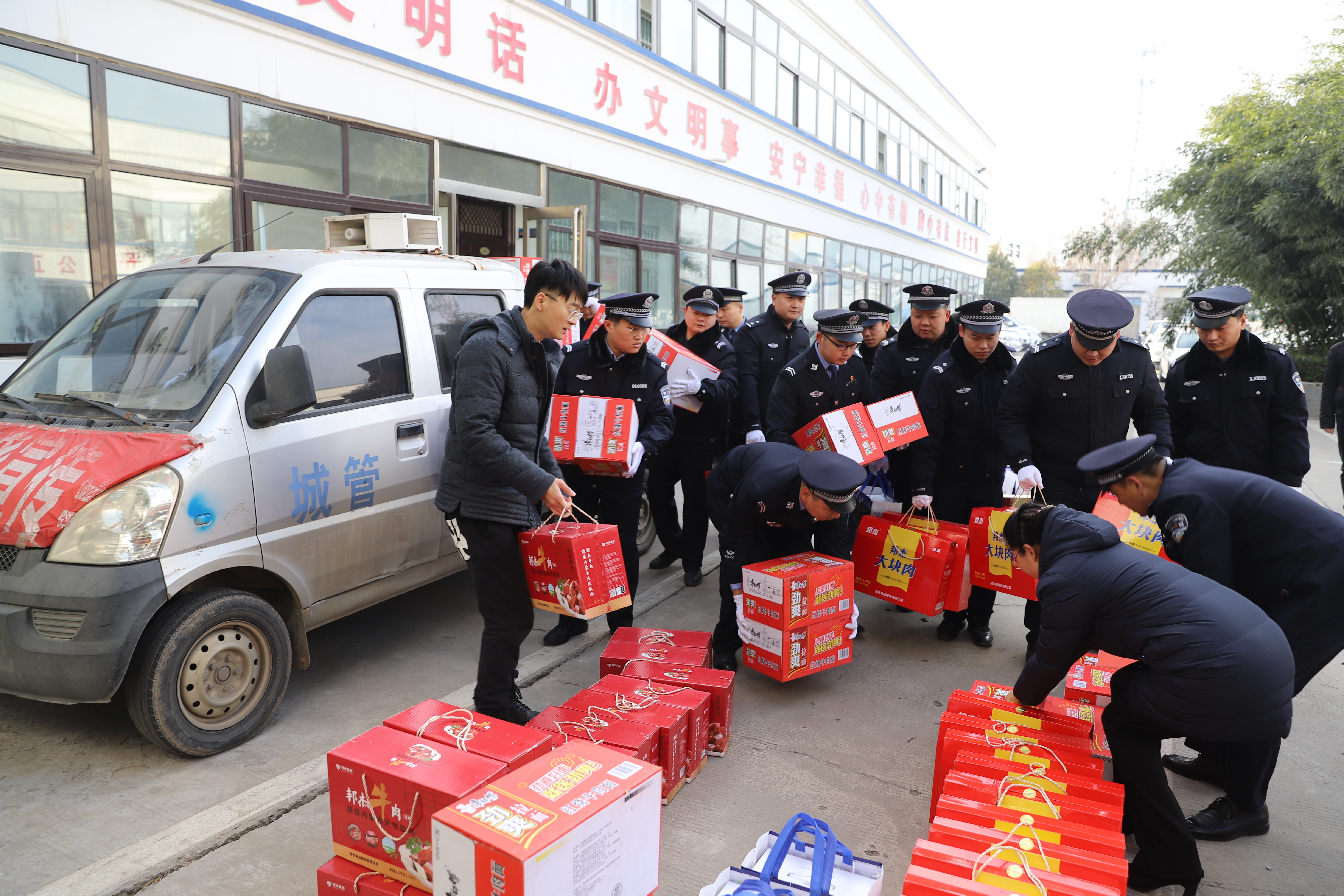 當(dāng)天上午,周口港區(qū)公安分局院內(nèi)民警、輔警列隊整齊,士氣振奮。程若光一行攜慰問品、慰問金與周口港區(qū)公安共同慶祝首個“中國警察節(jié)”。