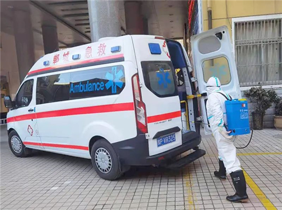 發(fā)熱患者經(jīng)過之處,醫(yī)院專職消毒人員和各科室工作人員立即對沿途道路、儀器進行全方位多角度消毒滅殺。