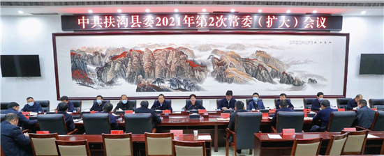 1月14日,扶溝縣委召開2021年第二次常委(擴(kuò)大)會議,傳達(dá)學(xué)習(xí)中央經(jīng)濟(jì)工作會議精神、全國疫情防控工作電視電話會議精神和市委四屆十二次全會暨市委經(jīng)濟(jì)工作會議精神,安排部署疫情防控等工作。扶溝縣委書記張穎波主持會議并講話。