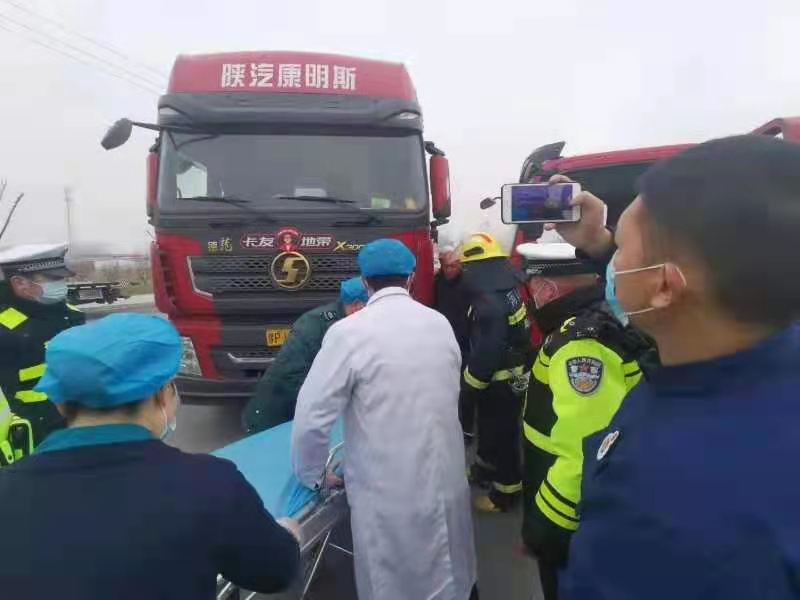 模擬設(shè)置,1月15日上午,在周口市G344國道12公里處二輛貨車在道路中心線處相撞,造成多人受傷,道路嚴(yán)重?fù)矶?、情況危急。