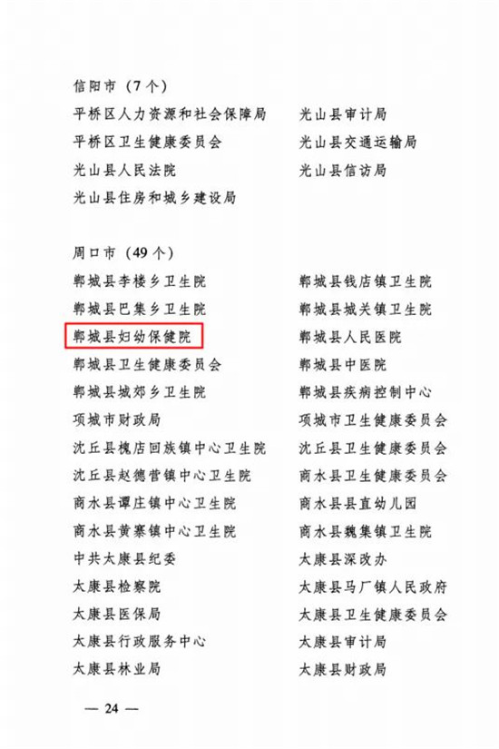 近日,鄲城縣婦幼保健院被河南省愛衛(wèi)會授予“河南省健康單位”榮譽(yù)稱號。該縣同樣獲此殊榮的還有縣衛(wèi)健委,人民醫(yī)院,中醫(yī)院,疾控中心和城郊、李樓、巴集、錢店、城關(guān)衛(wèi)生院。