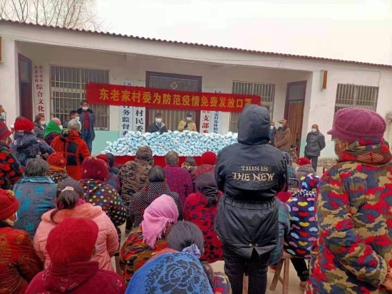 據(jù)了解,東老家行政村在外務(wù)工人員較多,在家留守的老人特別是貧困家庭的老人大多沒有準(zhǔn)備口罩。村黨支部書記劉杰了解到這一情況后,結(jié)合春節(jié)臨近,外出務(wù)工返鄉(xiāng)人員逐漸增加的現(xiàn)狀,決定購(gòu)買2萬只口罩,免費(fèi)向本村六十歲以上老人、貧困戶家庭人員、村小學(xué)師生每人發(fā)放50只,確保他們的個(gè)人疫情防控所需。