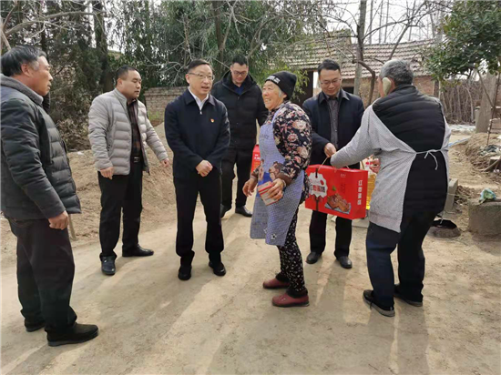 當(dāng)天,武衛(wèi)東等對(duì)張龐村的“兩類人群”及其他困難群體進(jìn)行走訪慰問,給他們送去米、面、油等生活用品,幫助解決過冬過節(jié)困難。每到一戶,武衛(wèi)東都與困難群眾親切交談,詳細(xì)了解困難群眾的生活、生產(chǎn)和家庭實(shí)際情況,讓困難群眾真正感受到黨和政府的溫暖。
