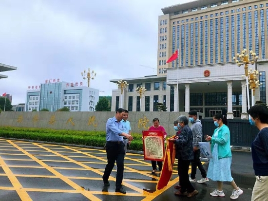 事情圓滿解決那天,西華縣華盛雅苑小區(qū)10多名業(yè)主代表和物業(yè)公司經(jīng)理一同送來了“心系百姓 為民解難”、“業(yè)主利益有保障 物業(yè)工作得順暢”兩面錦旗和感謝信以示謝意。