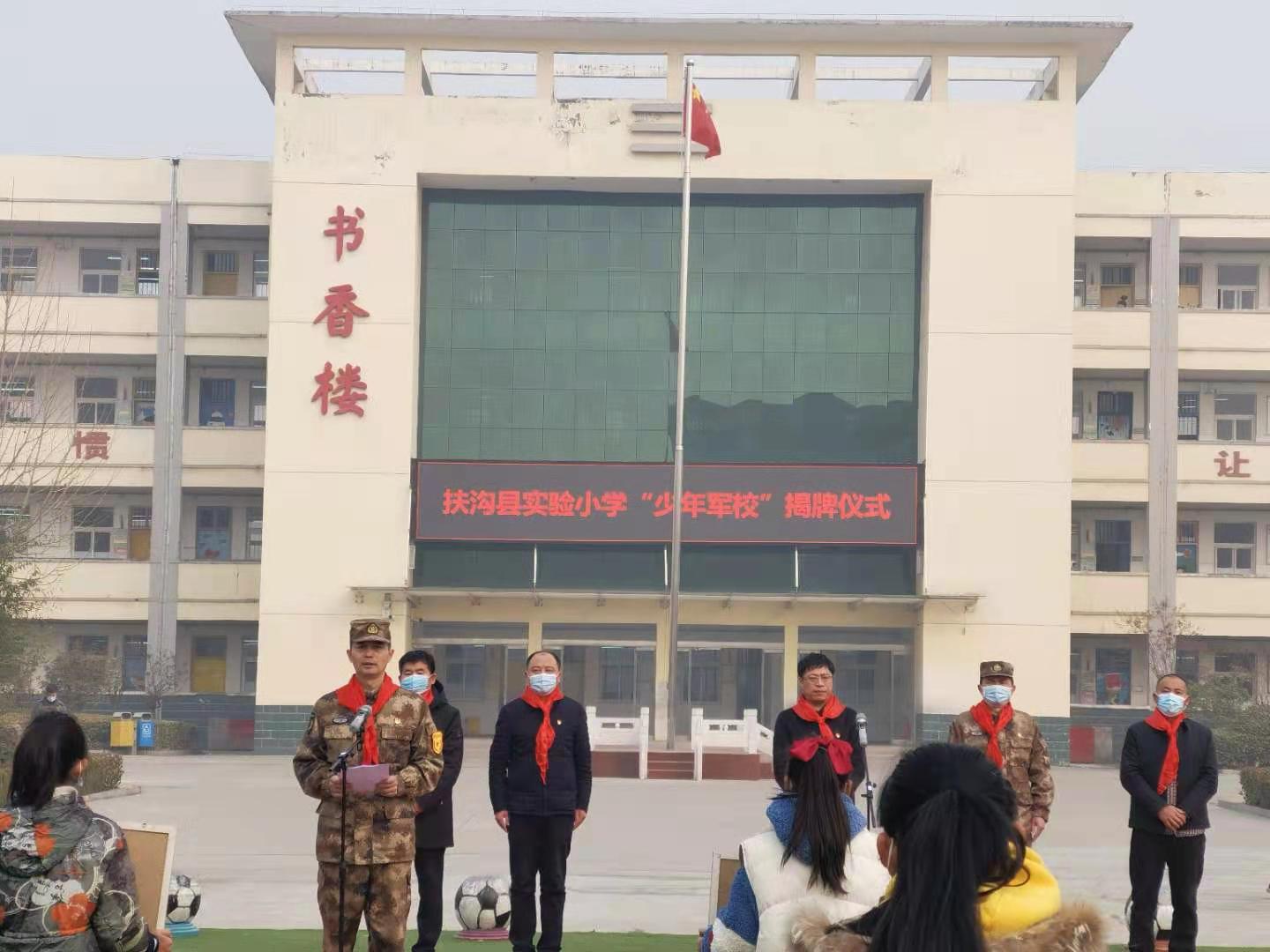 1月22日上午,扶溝第一所少年軍校揭牌儀式在扶溝縣實驗小學(xué)舉行。縣委常委、縣人武部政委閆忠玉,縣人武部副部長左永剛,縣教體局局長葛偉,縣退役軍人事務(wù)局局長謝自強(qiáng)等出席活動。