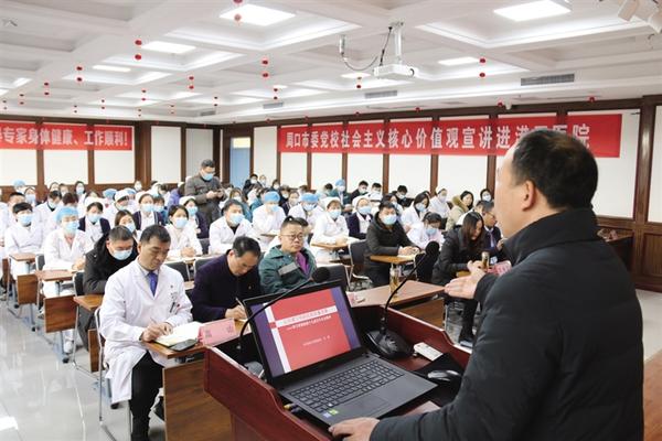 本報(bào)訊( 記者 侯國(guó)防 通訊員 艾義麟 文/圖)為學(xué)習(xí)貫徹黨的十九屆五中全會(huì)精神,近日,周口港區(qū)醫(yī)院(周口燒傷醫(yī)院)邀請(qǐng)市委黨校老師以“以黨建引領(lǐng)醫(yī)院高質(zhì)量發(fā)展”為主題,開(kāi)展黨的十九屆五中全會(huì)精神宣講活動(dòng)(如圖)。周口港區(qū)醫(yī)院董事長(zhǎng)孫繼祥、院長(zhǎng)賀志勇、副董事長(zhǎng)張巋、黨支部書記兼行政副院長(zhǎng)苑慧毓、副院長(zhǎng)王瑞海、業(yè)務(wù)副院長(zhǎng)高山、監(jiān)事會(huì)主席譚玉峰等院領(lǐng)導(dǎo)班子成員及醫(yī)院全體干部職工參加活動(dòng)。