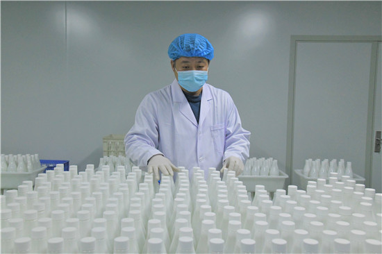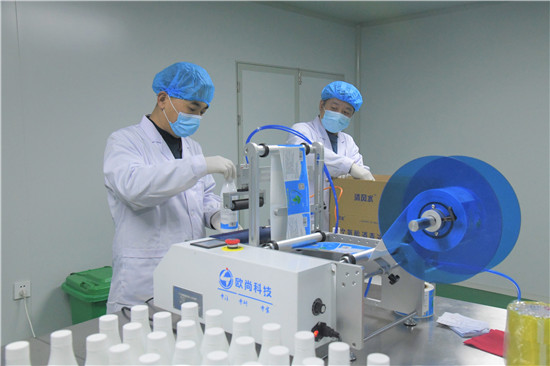 1月28日,在商水縣城關(guān)鄉(xiāng)瓦房莊村扶貧企業(yè)河南全民康健生物科技發(fā)展有限公司無菌生產(chǎn)車間,技術(shù)人員正在加班生產(chǎn)次酒精消毒液、免洗手消毒凝膠等消毒類產(chǎn)品。該企業(yè)由省檢察院駐村工作隊引進(jìn),主要生產(chǎn)次氯酸消毒液系列產(chǎn)品,年產(chǎn)量4000噸,主要用于空氣、手部、寵物、家具、水果蔬菜、餐飲具等消毒。隨著近期我國疫情多點局部暴發(fā),全民更加注重公共衛(wèi)生,該公司的免洗手消毒凝膠等產(chǎn)品銷售供不應(yīng)求,訂單較多,加班生產(chǎn)成常態(tài)。周口日報·周道客戶端記者 付永奇 楊華麗攝