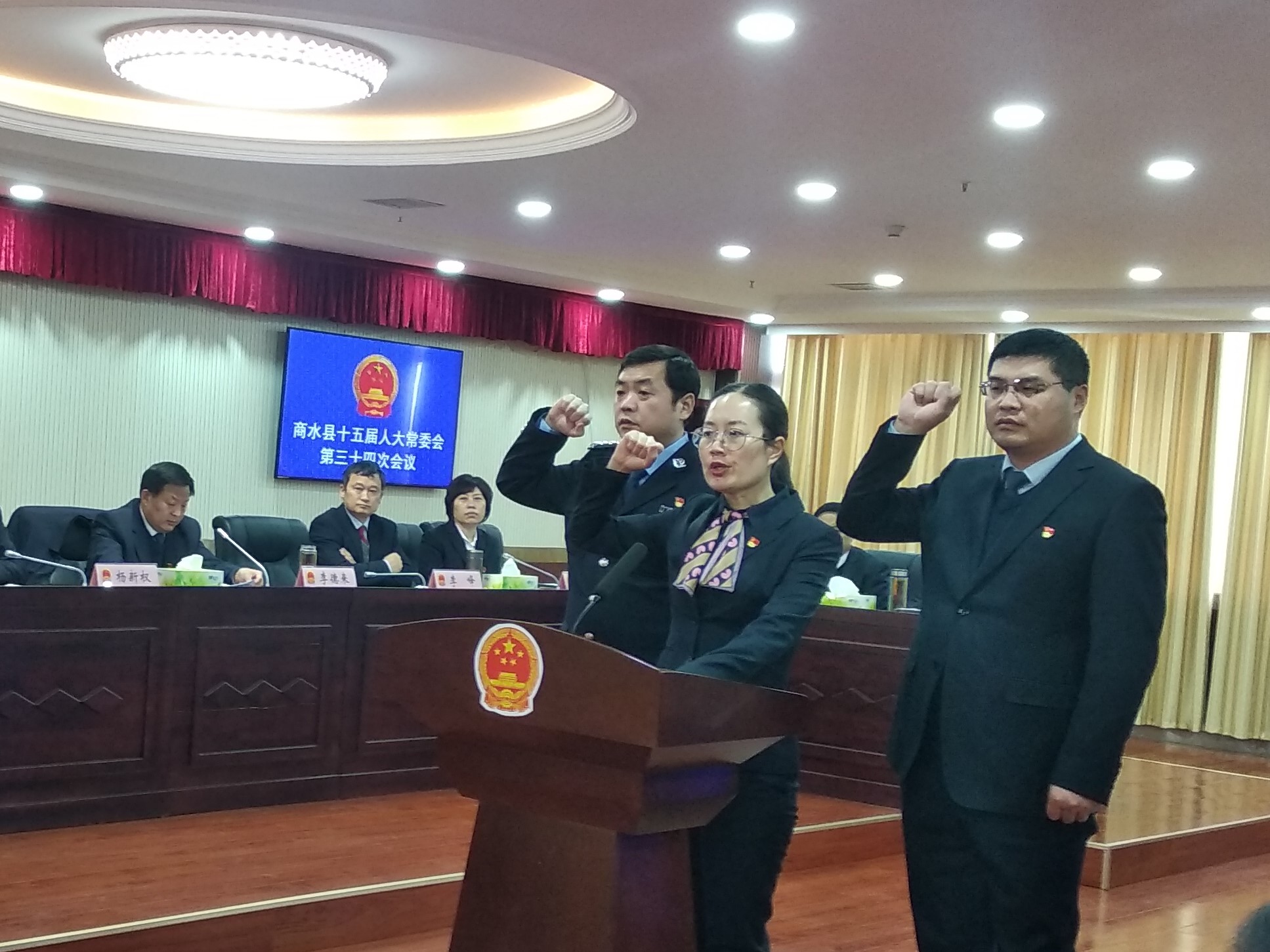 本次會議傳達學習習近平總書記在十九屆中央紀委五次全會上的重要講話和省十三屆人大四次會議精神;根據(jù)縣長田林同志的提請,決定任命龐艷杰、潘建甫二位同志為商水縣人民政府副縣長,王之棟同志為商水縣公安局局長,決定免去張忠同志的商水縣公安局局長職務。