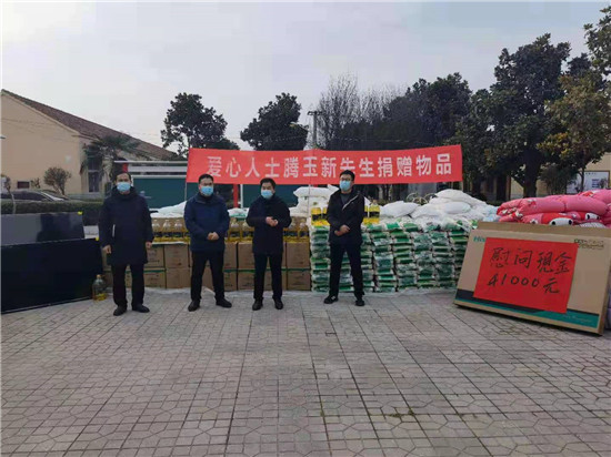 據(jù)悉,通過多年外出打拼,騰玉新終于在深圳有了自己的企業(yè),近幾年在國(guó)家政策的有力扶持下發(fā)展很好。致富不忘鄉(xiāng)親,反哺回饋鄉(xiāng)情,新春將至,騰玉新決定慰問家鄉(xiāng)困難群眾和敬老院孤寡老人。于是,騰玉新和李樓鄉(xiāng)黨委、鄉(xiāng)政府結(jié)合,共慰問家鄉(xiāng)困難群眾205戶,敬老院老人90余人,發(fā)放慰問金4.1萬元,慰問品:大米4100斤、面20500斤、糧油1025斤、被子180條、65寸液晶電視2臺(tái),共計(jì)15萬余元。