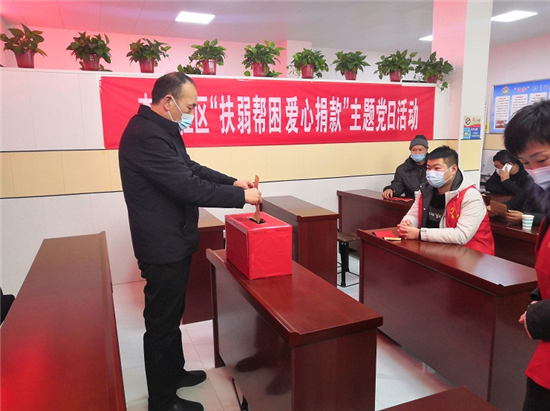 社區(qū)黨員積極響應(yīng),奉獻(xiàn)愛心,很快就捐款9300元。“我雖然不是黨員,但是看到社區(qū)黨員干部真心為群眾辦實事,我也要通過捐款這種方式盡一點綿薄之力,以實際行動幫助困難群眾?!庇械纳鐓^(qū)群眾聽到消息,特意趕到社區(qū)黨群服務(wù)中心,將捐款交到社區(qū)副主任李春花的手上。