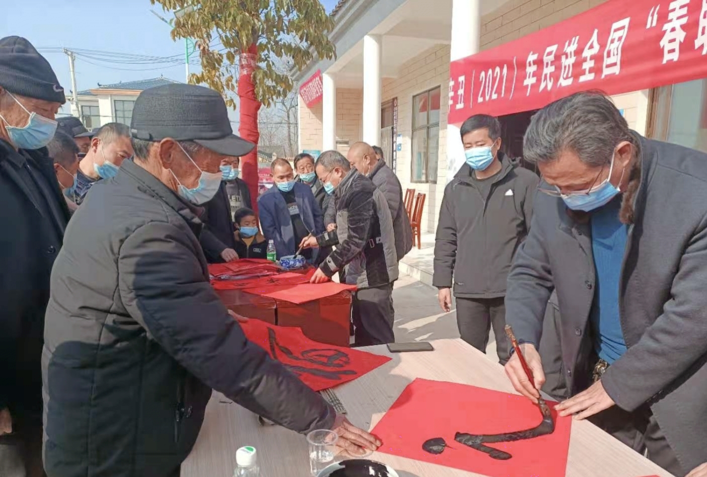 1月31日,市委統(tǒng)戰(zhàn)部聯(lián)合民進(jìn)周口市支部組織書畫名家走進(jìn)鄲城縣巴集鄉(xiāng)段寨行政村,開展“民進(jìn)全國(guó)‘春聯(lián)萬(wàn)家?奮進(jìn)新征程’”主題活動(dòng)。