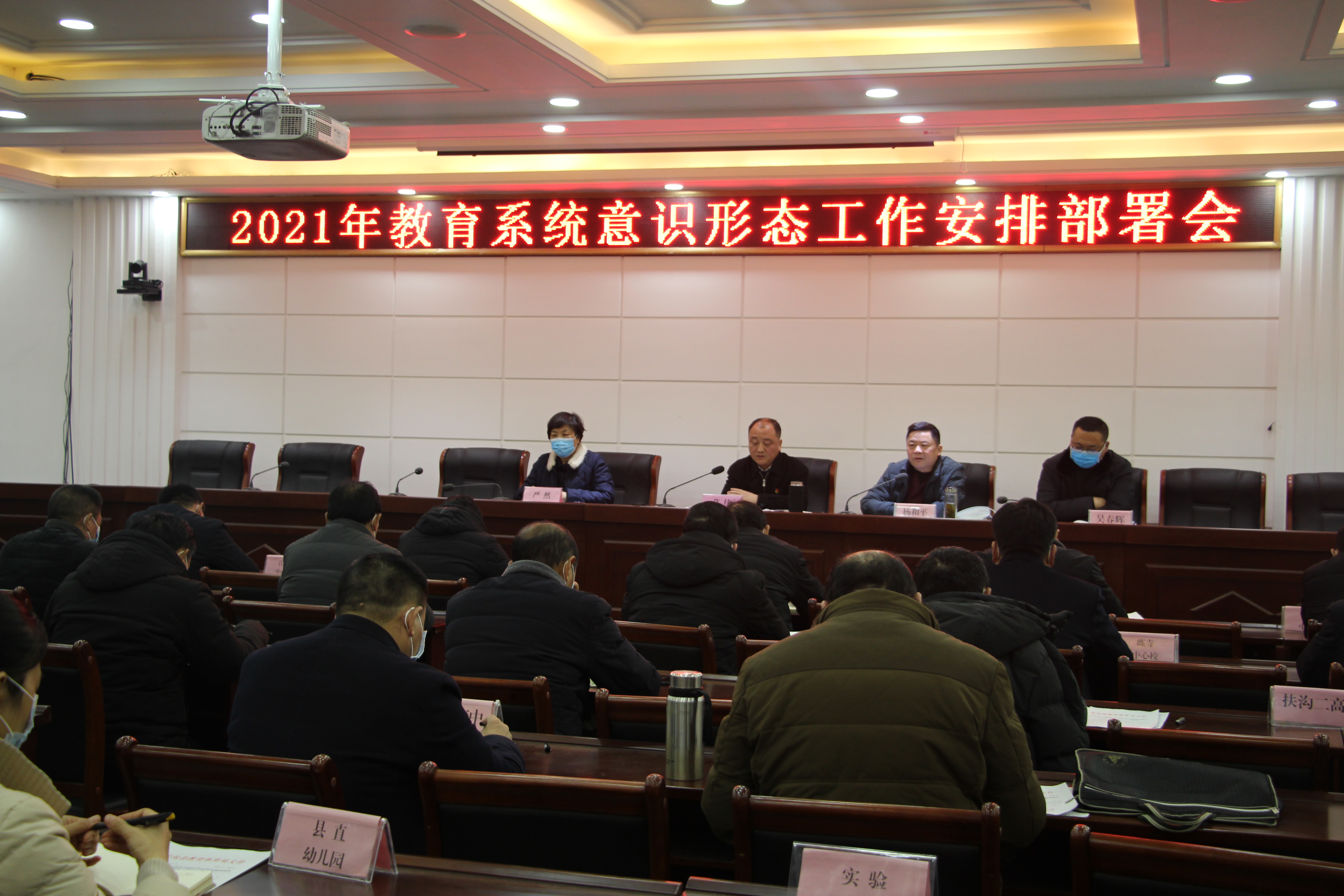 2月2日,扶溝縣召開2021年教育系統(tǒng)意識形態(tài)工作安排部署會??h教體局班子成員、各股室負(fù)責(zé)人,各鄉(xiāng)鎮(zhèn)(街道)中心校校長,各局直學(xué)校校長、幼兒園園長參加會議。