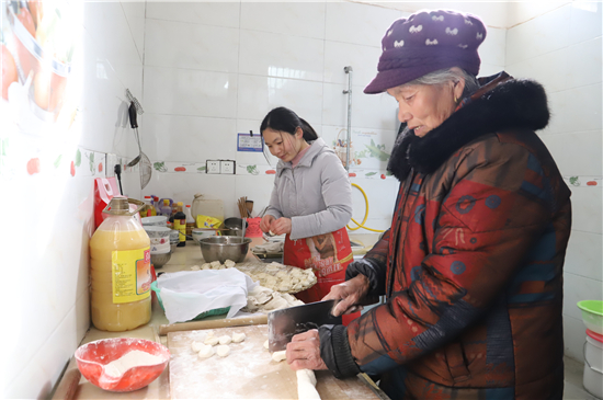 “別看孩子們都不回來了,但我可不是一個人呀,黨給俺一個好閨女。”正在廚房忙乎著包餃子的李成英滿心歡喜地說,“你看,俺娘倆,她剁餡兒、我搟皮兒,配合多默契。政府還給俺買了米面油和雞魚等,感謝黨呀,是黨的幫扶讓俺才有這好福氣。平時來幫我洗衣服、打掃衛(wèi)生、曬被子,還帶我洗澡,比親閨女走娘家來得還勤。”李成英一邊熟練地切著面團、搟著面皮,一面向記者介紹著站在一旁的好閨女。