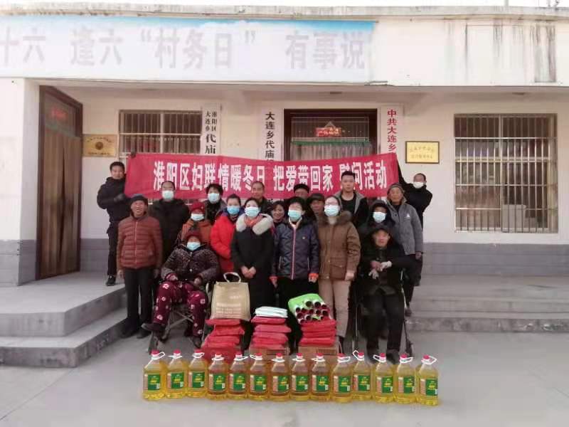 為把省、市婦聯(lián)“關(guān)于做好2021年春節(jié)慰問困難婦女兒童和家庭關(guān)愛幫扶工作的通知”精神落到實處,2月2日,淮陽區(qū)婦聯(lián)帶著威士德教育、市級巧媳婦就業(yè)創(chuàng)業(yè)示范基地霖海服飾有限公司捐贈的愛心物資,先后深入到大連鄉(xiāng)代廟行政村、產(chǎn)業(yè)集聚區(qū)棠棣行政村開展“情暖冬日 把愛帶回家”走訪慰問活動,為14戶貧困婦女、留守兒童、困難黨員等家庭送去米、面、口罩、春聯(lián)等生活用品,并向他們送上新年的問候和祝福。