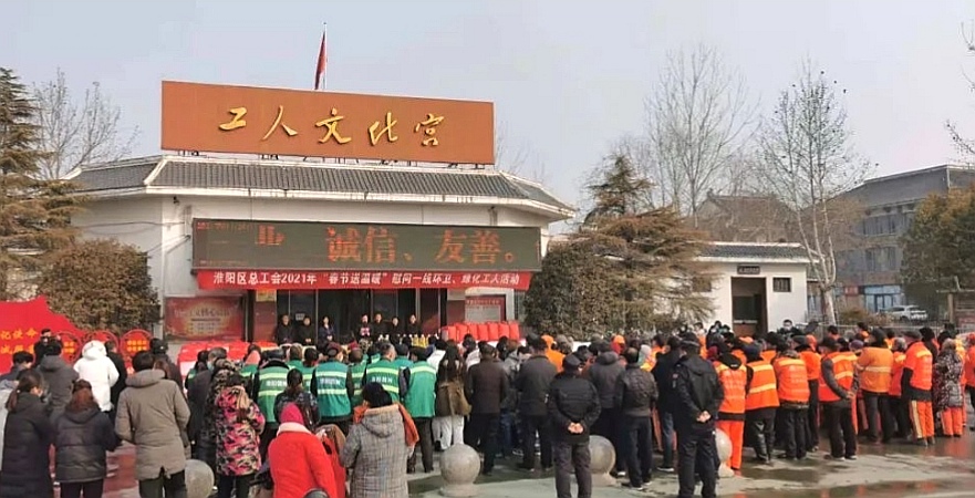 噓寒問暖暖意濃,一枝一葉總關情。近日,淮陽區(qū)總工會慰問一線環(huán)衛(wèi)、綠化工人活動在區(qū)工人文化宮舉行,像冬日里的暖陽匯成一股股暖流滋潤著廣大環(huán)衛(wèi)、綠化工人的心田。區(qū)委副書記胡東河,區(qū)總工會黨組書記、主席丁永華等領導參加慰問活動。