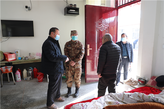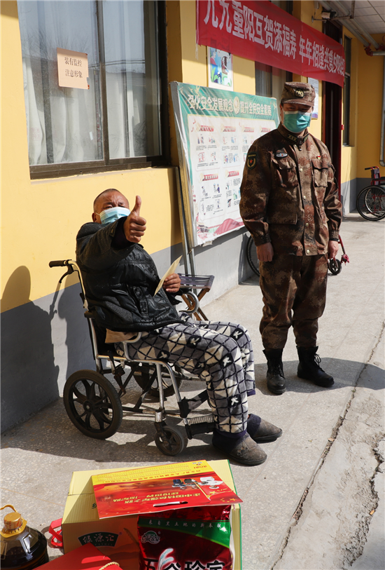 新橋鎮(zhèn)新兵楊凱入伍前和癱瘓的父親相依為命,市人武部領(lǐng)導協(xié)調(diào)地方政府,把其父親送到了新橋鎮(zhèn)敬老院公費養(yǎng)老,解除他的后顧之憂。春節(jié)到了,人武部領(lǐng)導還牽掛著這個特困家庭,矯百成帶隊來到新橋鎮(zhèn)敬老院。此時正值中午,楊凱的父親正坐在屋外的輪椅上曬太陽,見到矯部長的突然到來,激動的眼含熱淚,他緊緊握住矯百成的手久久不愿松開。矯百成噓寒問暖,給他送上1000元慰問金和生活必需品,楊凱的父親用他那不太清晰的語言表達對部長的真誠感謝。在敬老院院長的帶領(lǐng)下,矯百成又來到老人的住室察看起居情況,詢問他平時生活狀況,當?shù)弥先松畹暮苁娣r,矯百成滿意的笑了。