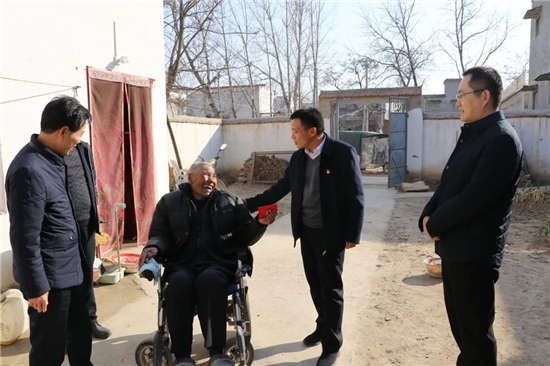 在后張行政村張小莊,王磊握著老黨員張玉文的手說,聽說你們家里最近遇到點困難,不要擔心,有困難找組織。你要樹立生活信心,注意身體。隨后,一行人給他送上了慰問品、慰問金,并送去了新春的祝福。