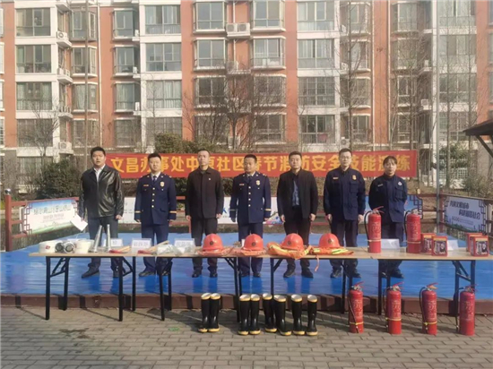 為進(jìn)一步筑牢春節(jié)期間消防安全防線,讓社區(qū)居民過(guò)上一個(gè)祥和、安全的春節(jié),2月4日,市城鄉(xiāng)一體化示范區(qū)文昌辦事處聯(lián)合示范區(qū)消防大隊(duì)舉行消防安全技能培訓(xùn)演練。示范區(qū)消防大隊(duì)教導(dǎo)員王海峰、文昌辦事處黨委書(shū)記李向鋒、主任胡光輝出席活動(dòng)。示范區(qū)消防大隊(duì)消防官兵、文昌辦事處社會(huì)治安綜合治理辦公室工作人員、中原社區(qū)全體社區(qū)干部和物業(yè)全體人員參加活動(dòng)。