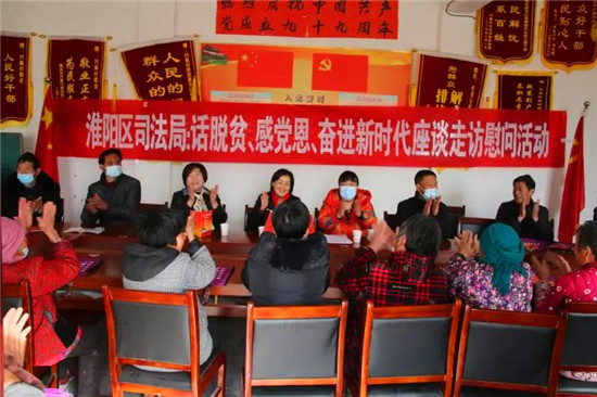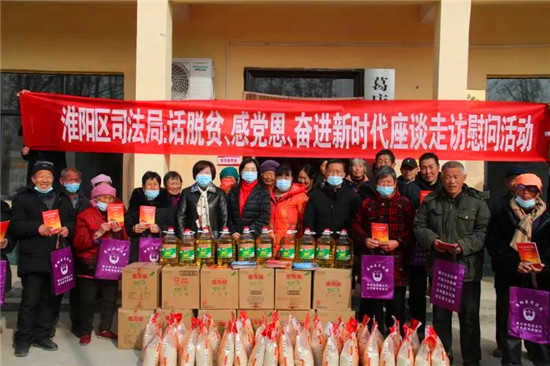 新春將至,淮陽區(qū)司法局組織開展“話脫貧、感黨恩、奮進新時代”主題活動。2月8日上午,淮陽區(qū)司法局黨組書記、局長段志偉帶領(lǐng)局黨組一行人前往葛店鄉(xiāng)代集行政村慰問貧困戶、查看村居環(huán)境整治和基層黨建工作開展情況,并與村兩委干部、黨員和貧困戶代表召開座談會。