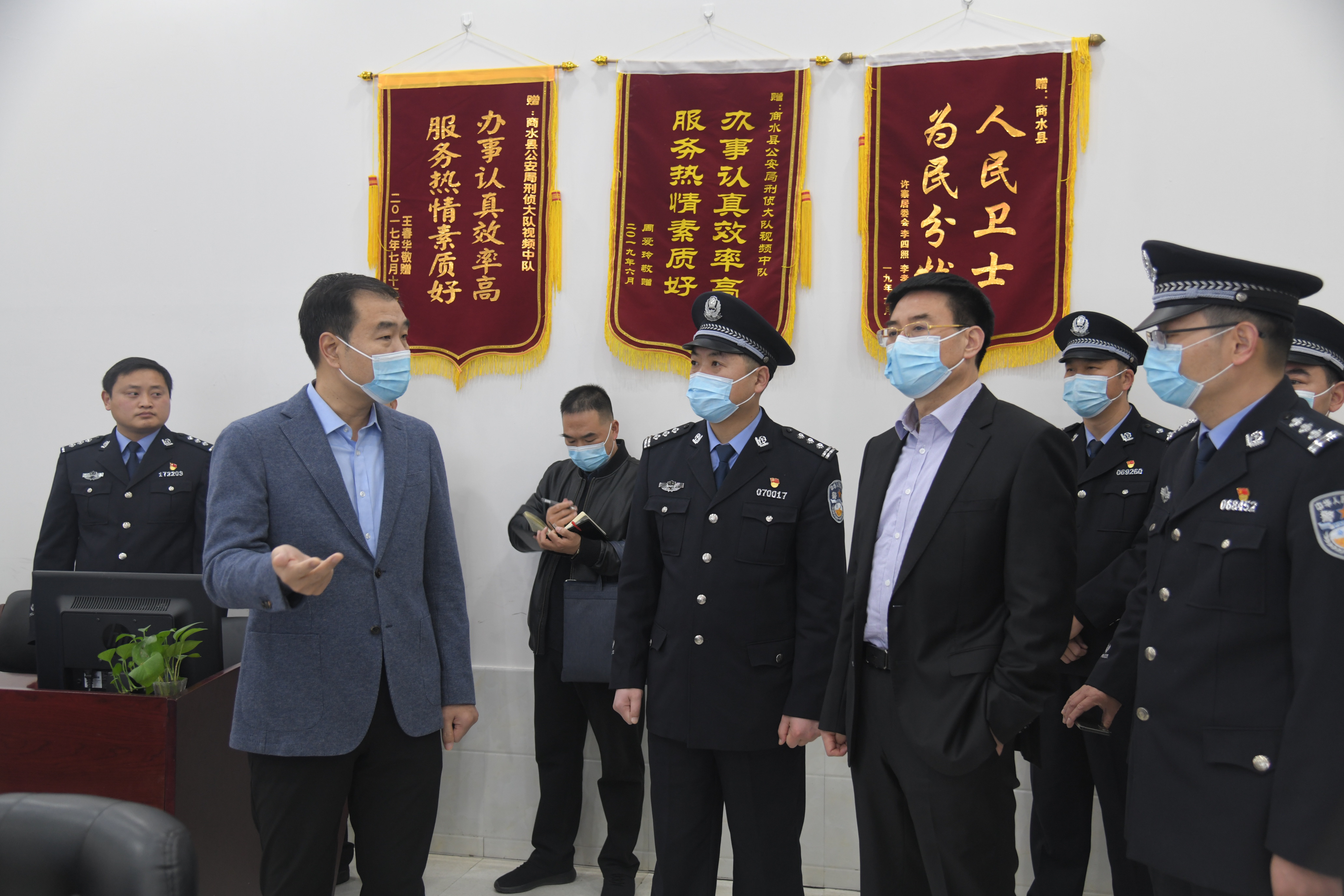 在縣公安局,孔陽、田林與備勤人員一一握手,親切交談。孔陽一行還到公安局110指揮中心和合成作戰(zhàn)中心,看望值班人員,對縣公安局新黨委班子成立以來取得的成績給予充分肯定。他指出,越是在萬家團(tuán)圓的時(shí)候,維護(hù)社會(huì)穩(wěn)定的任務(wù)就越重,希望堅(jiān)守在一線的工作人員繼續(xù)發(fā)揚(yáng)良好的作風(fēng),堅(jiān)守崗位,確保全縣人民過一個(gè)平安祥和安全的春節(jié)。