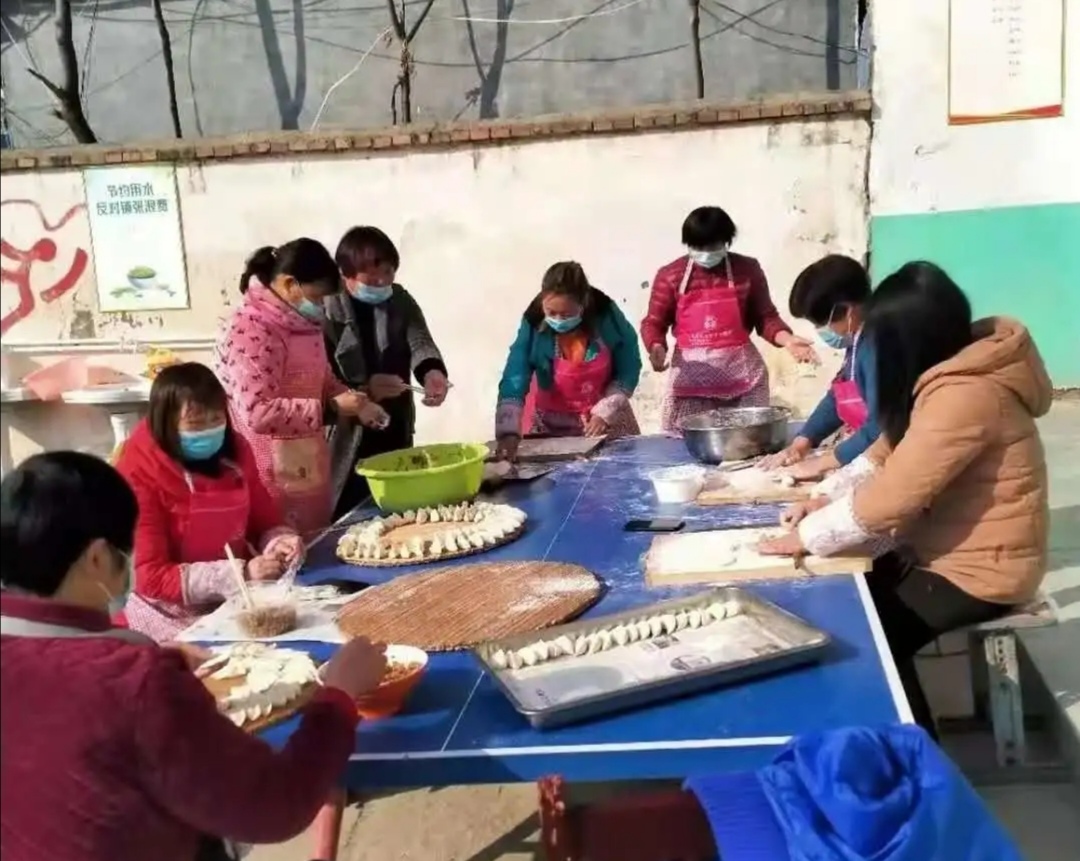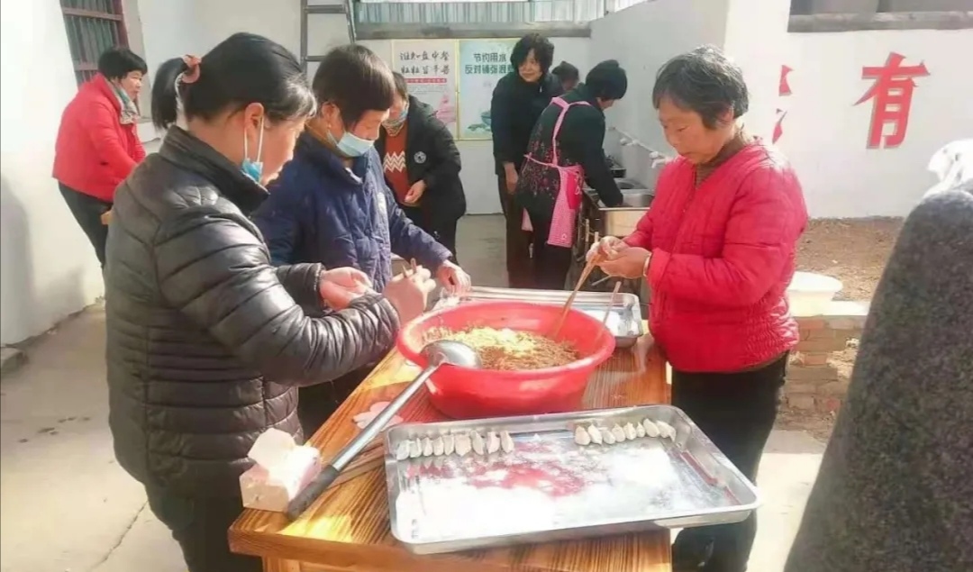 “我來搓面勁兒”“我來搟皮兒”“我來包餃子”……奉母鎮(zhèn)前邵村“鄉(xiāng)村大食堂”里一派熱鬧景象,該村鄉(xiāng)村振興文藝宣傳隊的十余名婦女同志自告奮勇,爭先在除夕晚上的團圓飯上“露一手”。大家有說有笑,圍在數平方米的巨大案板前,拿出了看家本領,分工協(xié)作,揉面、搟皮、包餃子,個個動作嫻熟,包起餃子來麻利干練,不知不覺間,面前的盤子里就放滿了餃子。 “今天晚上,我們每人都要炒兩個自家拿手菜,只能多不能少,邀請我們的老隊長、老隊員都來一起過除夕,看春晚,守歲!”在七二村“鄉(xiāng)村大食堂里”,支部書記何世圈給村“三委”班子下了硬性任務。