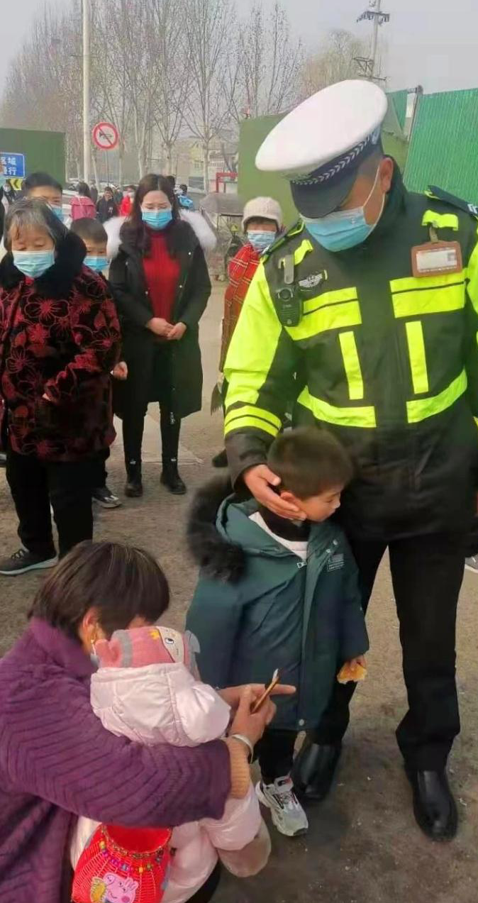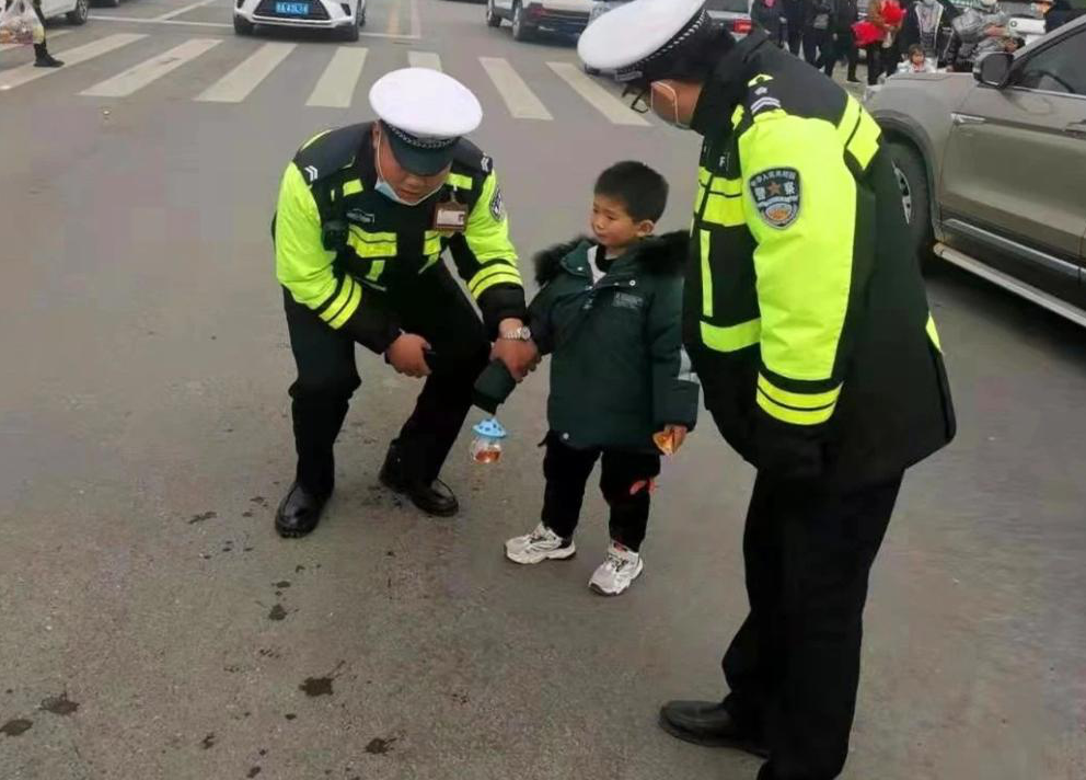 2月12日(大年初一)下午,淮陽區(qū)公安局交警大隊城市中隊在太昊陵景區(qū)緊張有序指揮交通時,接到兩名婦女求助,稱:“自己的兒子在太昊陵游玩時不慎走丟”,懇請警察同志幫助尋找。執(zhí)勤交警看到家長的著急心情,第一時間安慰家長,隨后用對講機通知各附近執(zhí)勤人員一同尋找走丟兒童。通過城市中隊執(zhí)勤交警共同努力,最終在西蔡河橋萬果園廣場找到走失兒童,并將小孩安全交到其父母手中。孩子父母非常感激,含淚向執(zhí)勤交警致敬!