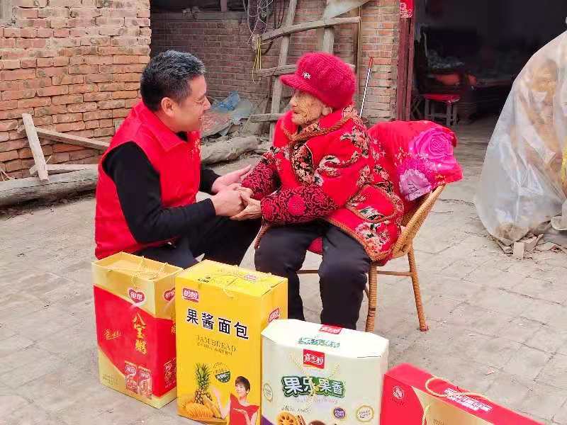 按照中國民間傳統(tǒng)習俗,新春伊始,人們都要穿戴新衣新帽走親訪友,拜年送祝福。2月12日,農歷正月初一一大早,遜母口鎮(zhèn)心連心雷鋒服務隊隊長張新靜帶領志愿者張建設、劉賀敬、馮茹愿、賈衛(wèi)蒙、馮柯馨、歐樣等人就敲開了106歲的張占花家門。當日,他們帶著核桃牛奶、面包、八寶粥,專門來為老人來拜年。 “新靜他們來了……”一聽聲音,張占花老人就猜到了是誰。經過去年一年的幫扶,張新靜等人已經與照顧占花老人成了“熟人”。“這些孩子們可沒少幫俺,又送物又幫俺打掃庭院”??吹街驹刚邆兊牡絹恚瑥堈蓟ɡ先说哪樕蠏鞚M笑容。