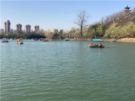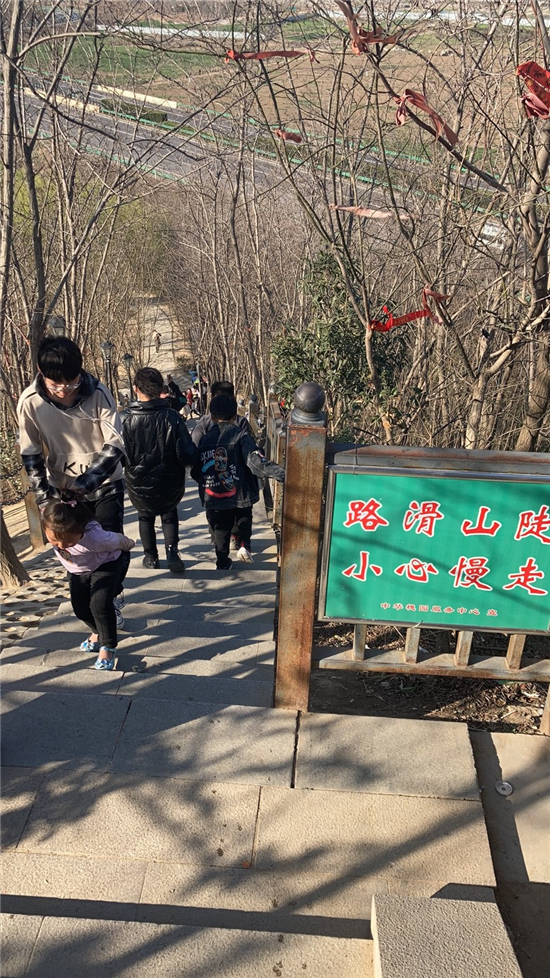 在槐香湖邊,年輕人三五結(jié)伴登上游艇,“坐船能到湖那邊的小島,島上也有槐樹,拍照肯定特別漂亮。”返鄉(xiāng)大學(xué)生把七星島上的景色留在了自己的相機(jī)里。七星島與槐香湖相連的橋上,人潮擁擠,有的人席地而坐,觀賞著橋上的風(fēng)景。當(dāng)問道在外市工作的王先生游玩感受時(shí),他回答到:“年后上班沒時(shí)間鍛煉身體,今天我把全家人帶來登山,呼吸一下新鮮空氣?!雹?