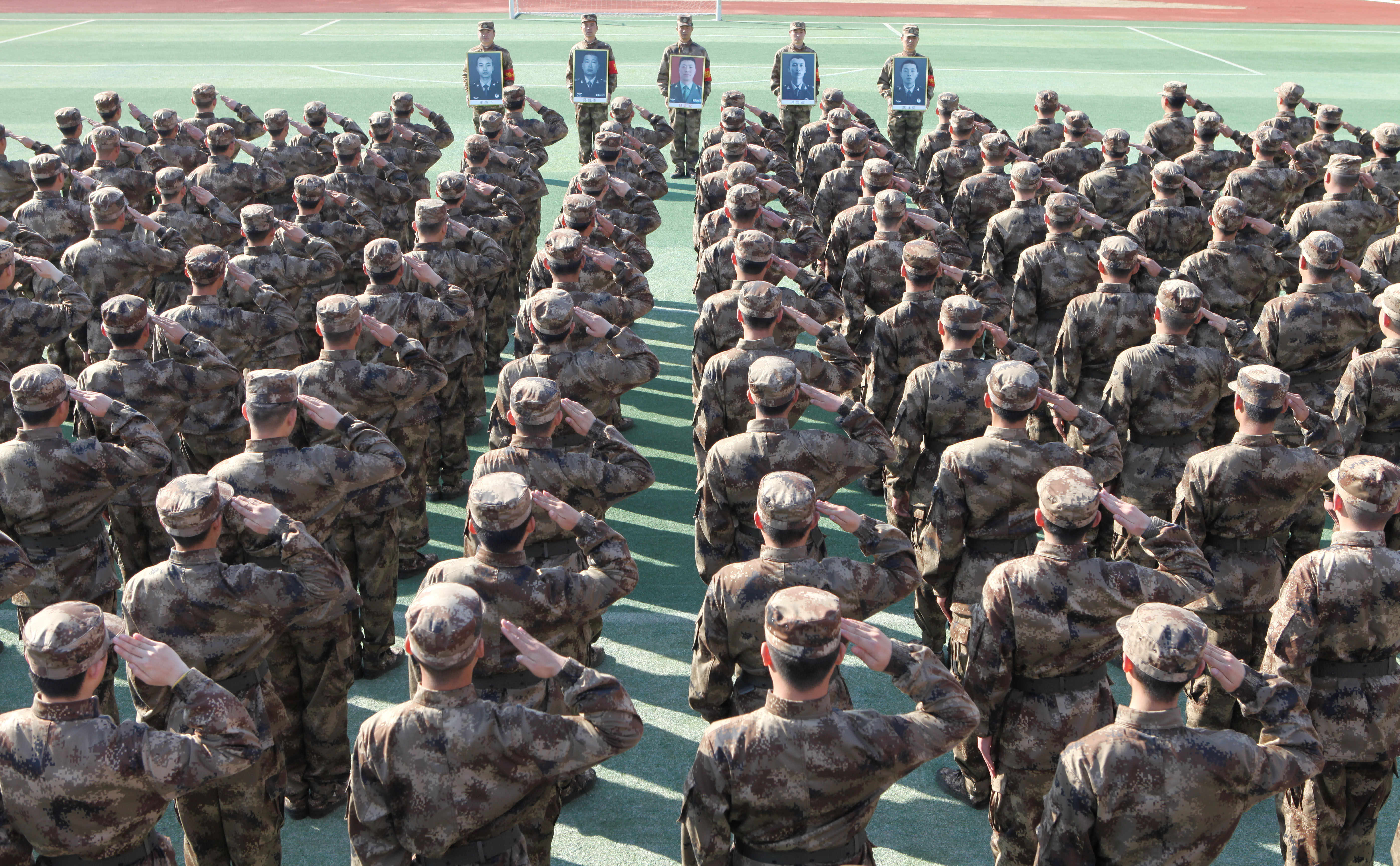 面對(duì)英雄的肖像,青年們舉起右手敬上一個(gè)莊重的軍禮!