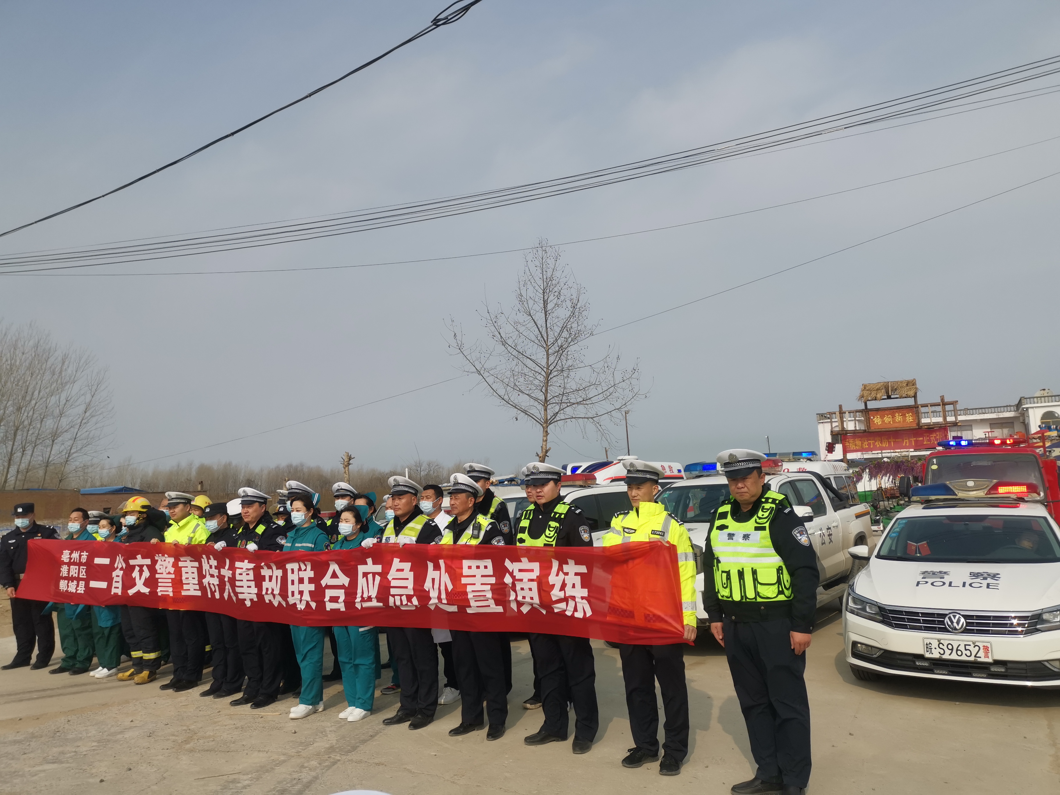 為提高冬季惡劣天氣條件下突發(fā)道路交通事故應(yīng)急處置能力、各部門之間的協(xié)同作戰(zhàn)以及應(yīng)急指揮系統(tǒng)的組織協(xié)調(diào)能力,最大限度減少因交通事故導(dǎo)致的人員傷亡,確保人民群眾生命財(cái)產(chǎn)安全,鄲城縣公安交通警察大隊(duì)聯(lián)合淮陽(yáng)區(qū)公安交通警察大隊(duì)和安徽省亳州市公安交通警察支隊(duì)四大隊(duì)雙溝中隊(duì),及鄲城縣公安局南豐鎮(zhèn)派出所,應(yīng)急管理、鄲城縣麗清醫(yī)院,鄲城縣中心醫(yī)院,道路基金救助辦公室等部門開(kāi)展了道路交通事故快速發(fā)現(xiàn)、及時(shí)救援、有效救治、妥善救助的“四位一體”聯(lián)動(dòng)型應(yīng)急處置演練活動(dòng)。
