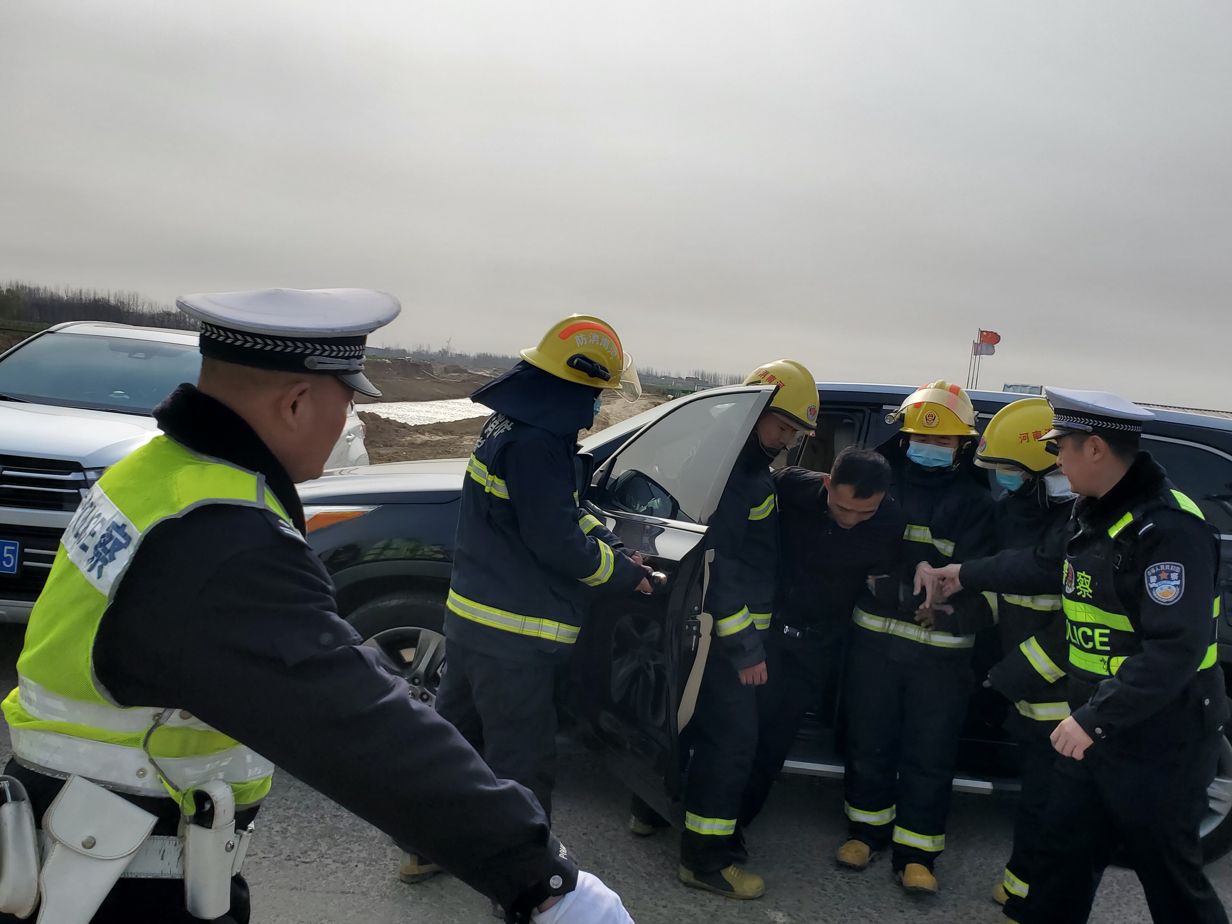 演練模擬2月23日10許,在G220國(guó)道河南安徽二省交界友誼橋處,二輛越野車在道路中心線處相撞,二輛車駕駛?cè)祟^部受傷流血,車門被卡,車輛起火冒煙道路嚴(yán)重?fù)矶?、情況危急。接到報(bào)警后,交警部門立即向上級(jí)進(jìn)行匯報(bào),“四位一體”聯(lián)動(dòng)工作機(jī)制隨即啟動(dòng),相關(guān)部門迅速趕往現(xiàn)場(chǎng)開(kāi)展事故處置和救援工作。同時(shí)會(huì)同交警、屬地派出所,消防救援、醫(yī)療救護(hù)部門一起協(xié)助開(kāi)展相關(guān)工作。隨后事故民警按照現(xiàn)場(chǎng)勘查要求,迅速對(duì)現(xiàn)場(chǎng)進(jìn)行勘查、拍照,提取相關(guān)證據(jù),配合搶險(xiǎn)、醫(yī)療施救各部門,并對(duì)現(xiàn)場(chǎng)遺留物品進(jìn)行清理、登記并妥善保管??辈榻Y(jié)束后交警部門解除警戒區(qū),將車輛疏導(dǎo)、分流完畢后撤離現(xiàn)場(chǎng)。