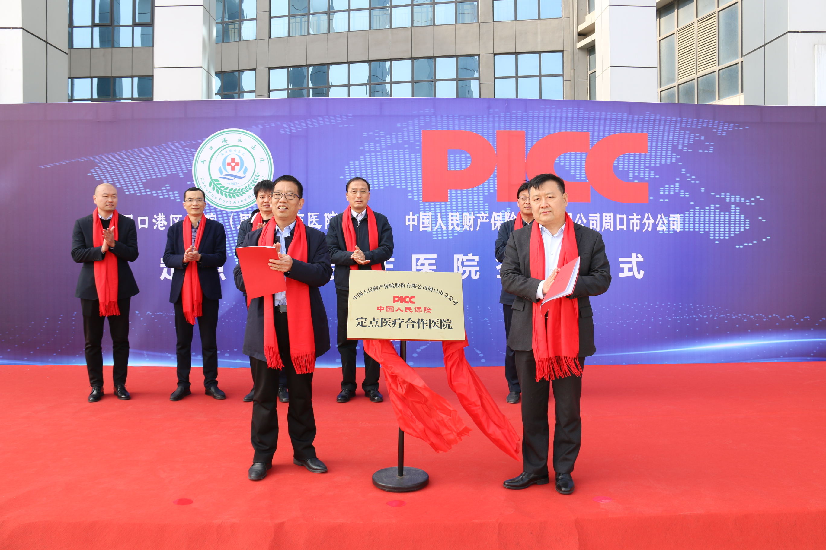 簽約揭牌儀式后,周口港區(qū)黨委委員張東立代表港區(qū)黨委、管委會對醫(yī)院和中國人保財險成功簽約表示熱烈的歡迎和祝賀。同時希望港區(qū)醫(yī)院努力為中國人保的參??蛻籼峁﹥?yōu)質(zhì)、便捷的醫(yī)療服務(wù),并深化與中國人保財險的合作,共同推進周口地區(qū)醫(yī)療衛(wèi)生事業(yè)和保險事業(yè)的健康發(fā)展,提高醫(yī)療資源和保險資源的利用率。