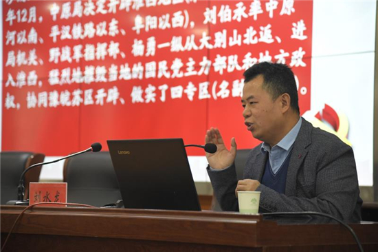 商水籍北大學(xué)子劉水龍結(jié)合史料,精彩講述賀龍北伐在商水播下革命火種、彭雪楓經(jīng)周口東進豫皖蘇燃起商水革命烈火、豫皖蘇軍區(qū)解放周口商水浴火重生,以及火熱革命中涌現(xiàn)出來的商水英烈艾力、趙海靜,支前模范徐乃貞等人的英勇事跡。這些生動鮮活的歷史人物故事,再現(xiàn)了英雄兒女在商水一人地上勇于革命、不怕犧牲的紅色革命歷史。劉水龍豐富的史實、鮮明的觀點、精辟的講述,不時贏得臺下陣陣掌聲。